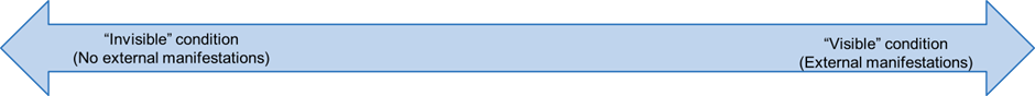 Some rare conditions are very visible. They have external manifestations, whether these appear on the skin, in the way the patient moves or some behaviour or speech-related symptoms. Diseases which are rare and visible may well be more subject to stigma than common conditions with external manifestations. This is because people do not identify the manifestation as a symptom of a disease as they are often not even aware that the disease exists. Two examples we have encountered were the ALS patient who was called a drunk in public and the mother of an infant with epidermolysis bullosa who was loudly accused of physically abusing her child to cause the visible wounds on the baby. Understandably, this only added to the considerable distress the mother was already living through
